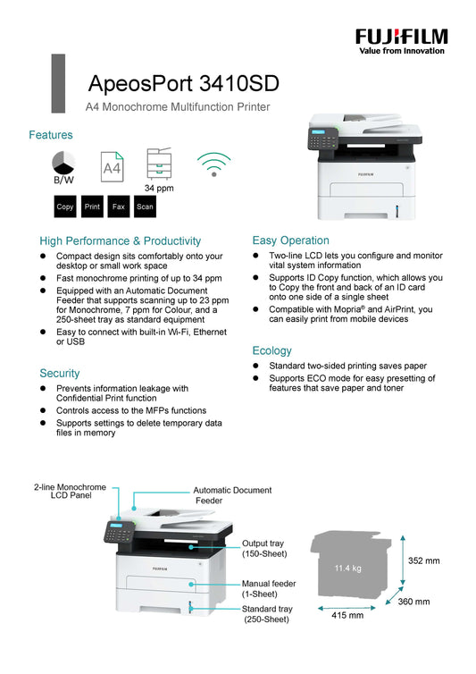 ApeosPort 3410sd Fujifilm 4 in 1 Mono Printer.