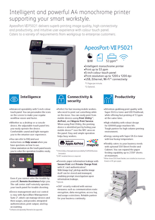 FujiFilm ApeosPort-VII 5021 A4 Monochrome Printer 53ppm. 3 years on-site warranty